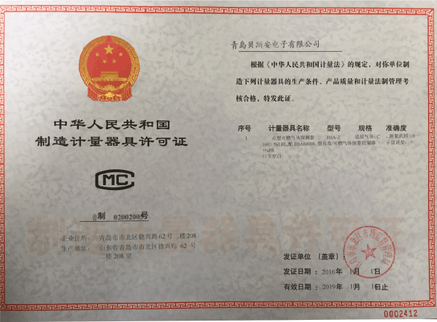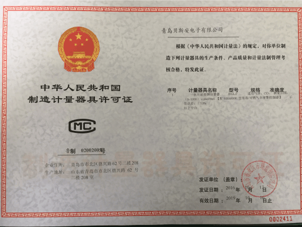 我公司是青島市具有國家質(zhì)量技術(shù)監(jiān)督部門頒發(fā)的計量器具生產(chǎn)許可證的生產(chǎn)企業(yè);獲得國家防爆電氣產(chǎn)品質(zhì)量監(jiān)督檢驗中心頒發(fā)的防爆合格證;獲得國家公安部消防產(chǎn)品合格評定中心頒發(fā)的消防產(chǎn)品形式認(rèn)可證書。
